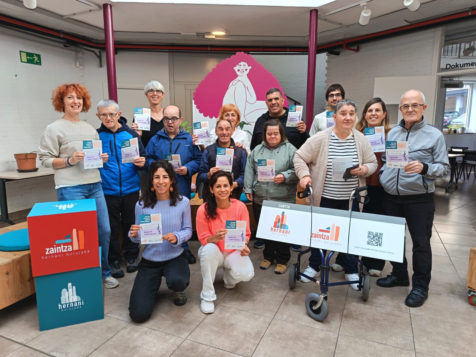 Auzozain izateko izena emateko herrian zehar jarriko diren postuetan, Kulturarteko plaza feministan edo online egin daiteke ondorengo QR kodea erabilita.