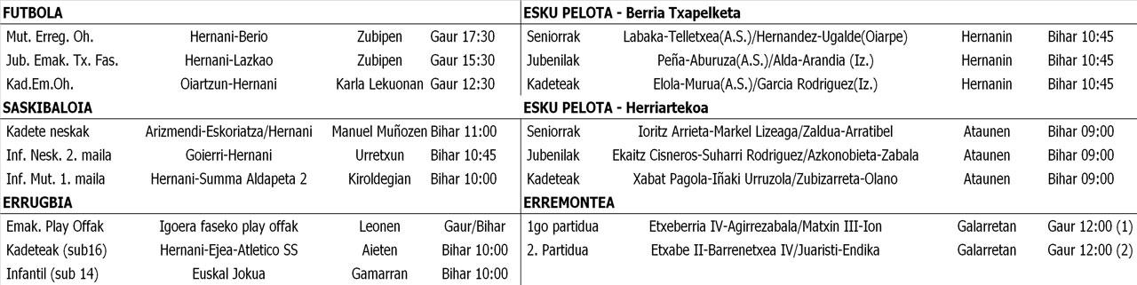 Hernaniko asteburuko partiduak