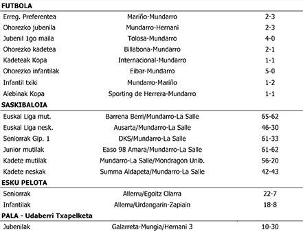 Asteburuko emaitzak