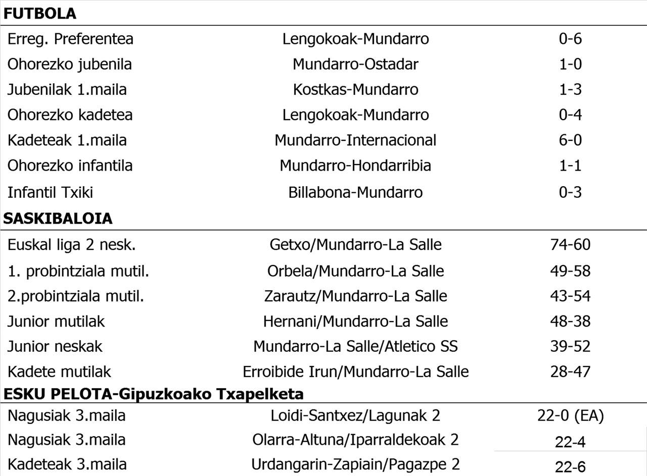 Asteburuko partiduen emaitzak