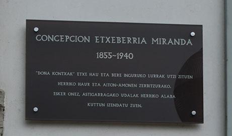 Kontxa Etxeberria Miranda edo Doña Kontxaren izena askotan aipatu dugu azken aldian Kronikan. Izan ere, alaba kuttun izendatu zuen Udalak maiatzaren 19ko Plenoan eta astelehenean, plaka bat jarri eta lore eskaintza egin zuten udal ordezkariek, bere omenez (bere heriotzaren urteurrenean). Baina zein zen Kontxa Etxeberria edo Doña Kontxa?