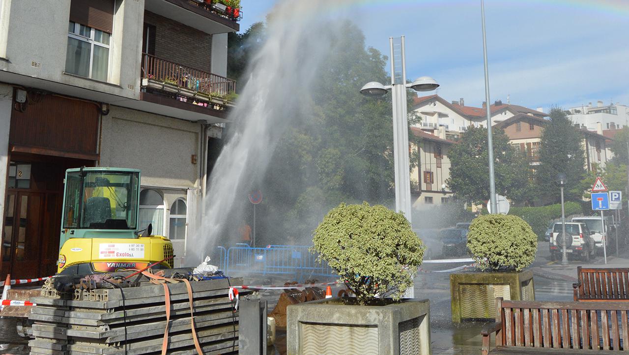 Atsegindegin obretan ari dira eta atzo goizean, 09:00ak aldera lanean ari zirela, ur tuberia bat puskatu zen. Ur txorrota ikusgarriak Atsegindegiko baztarrak busti zituen, ura moztu zuten arte. 10:30ak aldera izan zen hori. Eta inguruko etxeak urik gabe egon ziren eguerdira arte. Ordurako konpondu zuten eta arratsaldean zehar bete-lanetan aritu ziren.