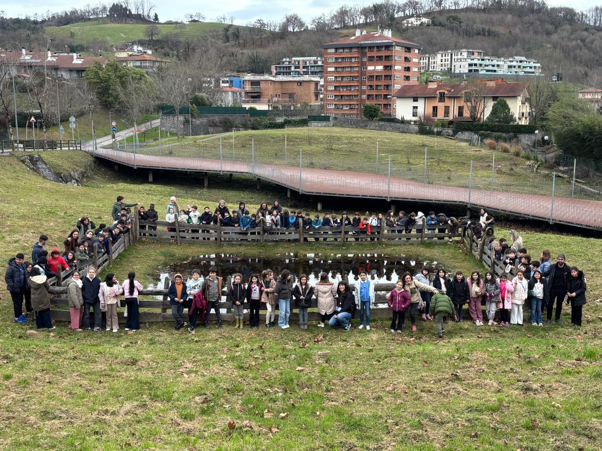 Hezeguneen Nazioarteko Eguna da biharkoa, eremu natural horiek daukaten garrantzia aldarrikatzekoa. Eta horren atarian, argazki bateratua egin dute Hernaniko hiru eskolatako ikasleek, Ave Mariako urmaelaren ondoan. Horrela, elkarrekin ospatu zuten Elizatxo, Langile eta Urumea ikastoletakoek.
